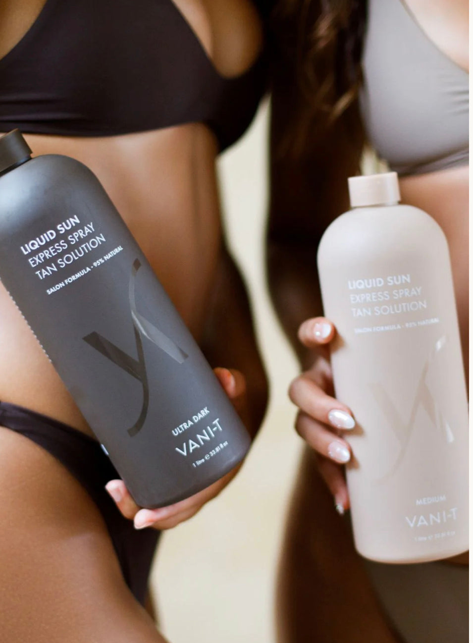 Grab your VANI-T Spray Tan Machine (because there’s nothing like pro level equipment, right?) and start applying a fine mist. It’s all about technique – spray evenly and gently.