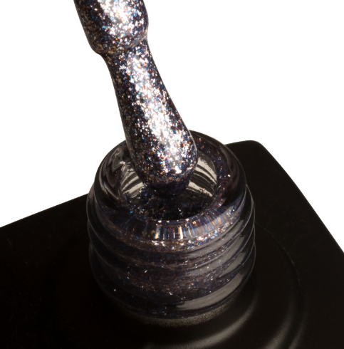 Azure is a deep, inky navy base infused with dense, multi-sized silver holographic glitter. The reflective particles create a high-impact, galaxy-like sparkle that flashes blue, silver and subtle prism tones under different lighting.